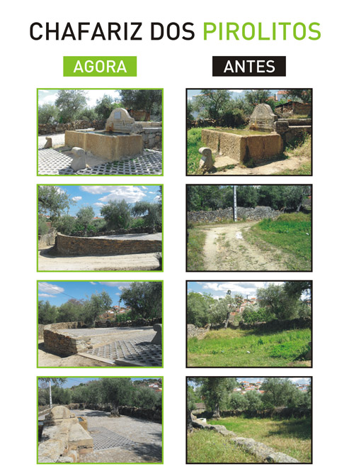 Numa política de recuperação de espaços públicos pertencentes à memória colectiva das gentes de Proença e no sentido de possibilitar um conhecimento mais profundo do nosso valioso património a todos aqueles que nos visitam, cada vez em maior número, decorreram as obras de beneficiação dos Chafarizes da Devesa, Pirolitos, Fonte da Goma e Arregaça, bem como as zonas envolventes e respectivos acessos. Estas obras inserem-se num plano de desenvolvimento global da Freguesia de Proença - a - Velha e visam fomentar a actividade turística com o respectivo incremento sócio-económico.